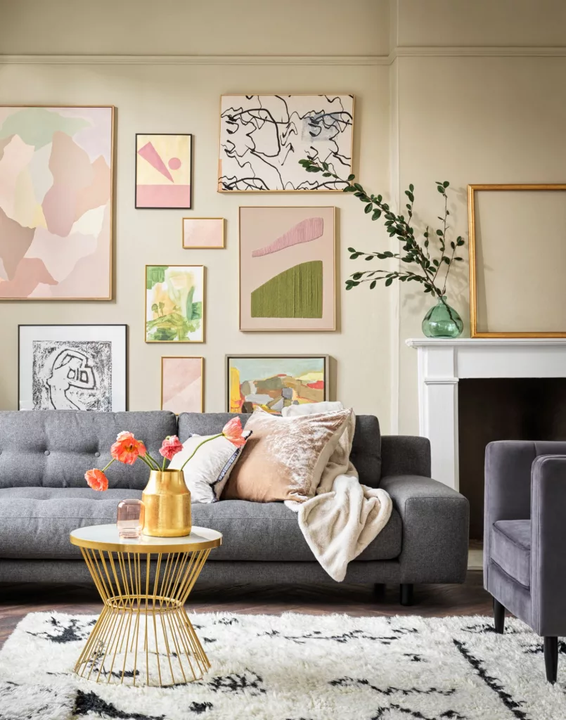 Use statement art pieces on plain walls. Maintain adequate intervals between artworks. Don’t place art on every single wall. Hang art at eye level.