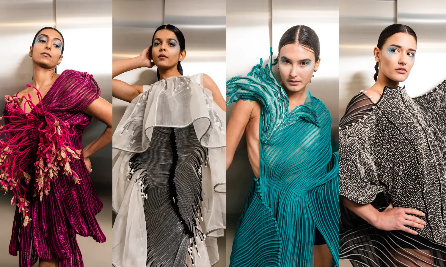 The attention to detail can be seen in the corals, coloured fish, jellyfish that have been metaphorically represented in her line titled “Abyss”, which also means hitting ground zero, inspired by personal triumphs and failures. “Rather than hitting ground zero, my message was to always go deeper and further in the quest to discover yourself and the hidden beauties that the ocean and we often hide. I see only triumphs and the search for more,” she reiterates.